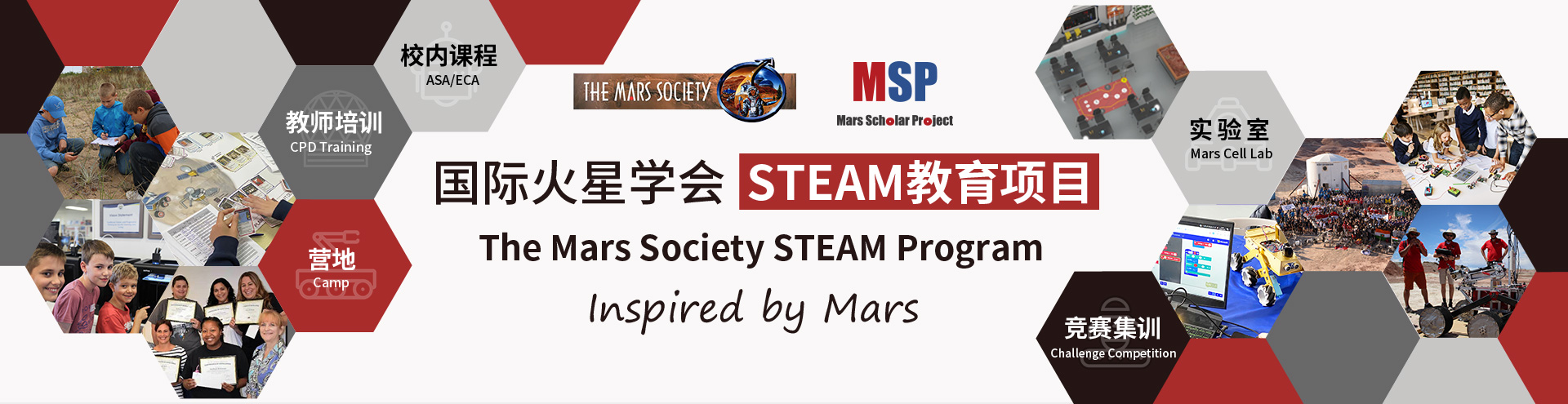 Mars Scholar Project (MSP) is co-founded by The Mars Society and Worldshaper Academy 思铺学院 in China. MSP is an advanced interdisciplinary STEAM project, and aims for cultivating the young leaders for future innovative organizations. Currently, MSP ® focuses on training teachers certified by the The Mars Society, organizing Mars Challenges Competitions and science camps, developing member schools to build up Mars Scholar Clubs.